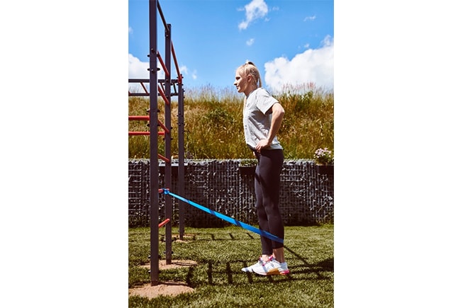 Widerstandsbänder und einen Widerstand, indem du die Bänder befestigen kannst. Zum Beispiel geht das an den Outdoorstationen oder der Sprossenwand im Indoor-Gym.