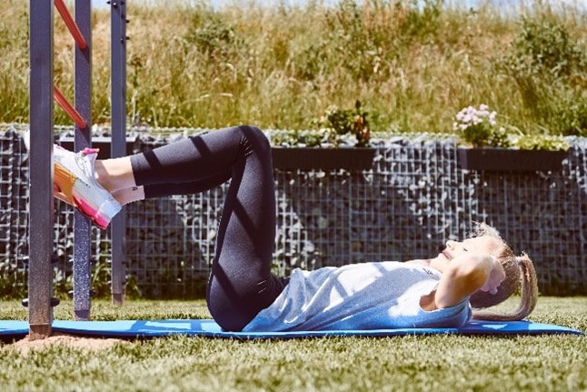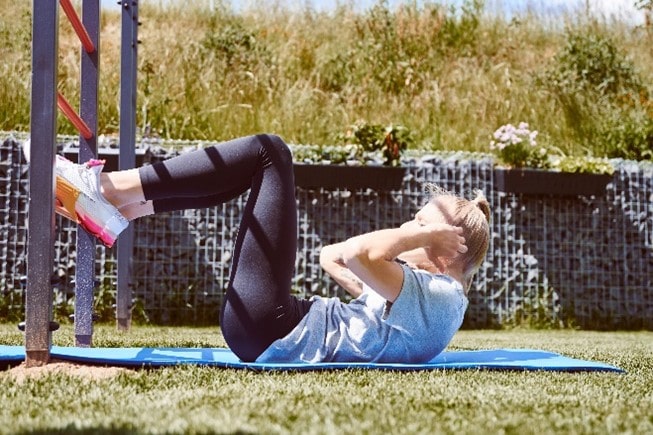 Bei dieser outdoor Trainings Übung liegt der Fokus auf deinen Bauchmuskeln.