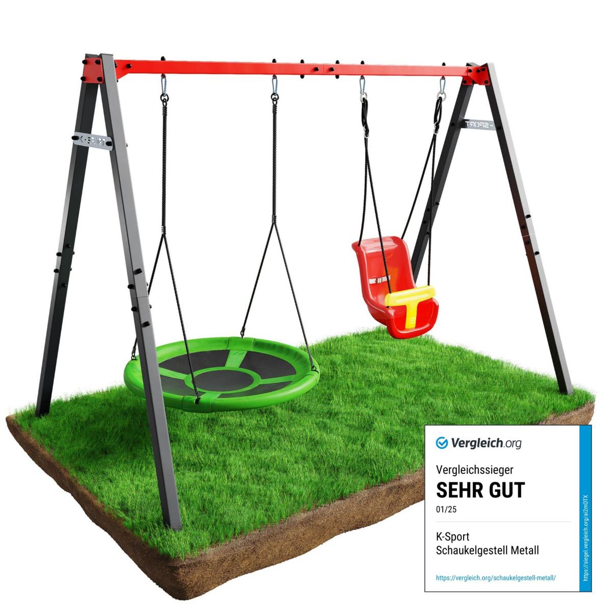 Unsere robuste Doppelschaukel für den Garten bietet unendlichen Spielspaß für mehrere Kinder gleichzeitig. Das solide Schaukelgestell ist so konstruiert, dass eine Babyschaukel und eine Nestschaukel abwechselnd oder je nach Bedarf montiert werden können.