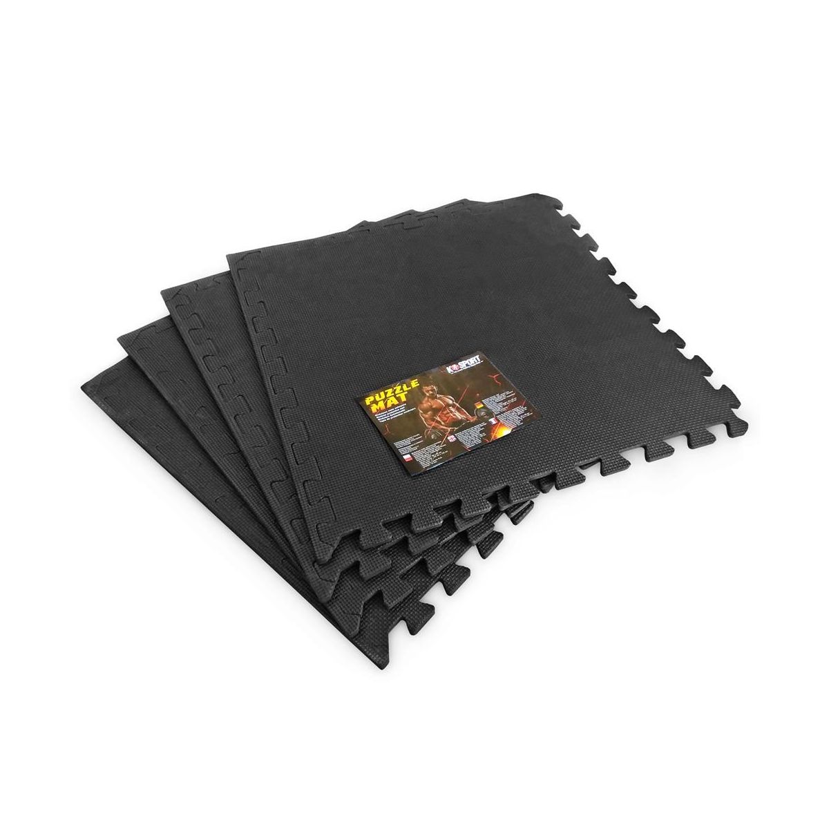 Las alfombrillas protectoras están hechas de espuma EVA y cada elemento mide 61 x 61 cm con un grosor de 1 cm. Al unir 4 elementos, se obtiene un área total de 122 x 122 cm.